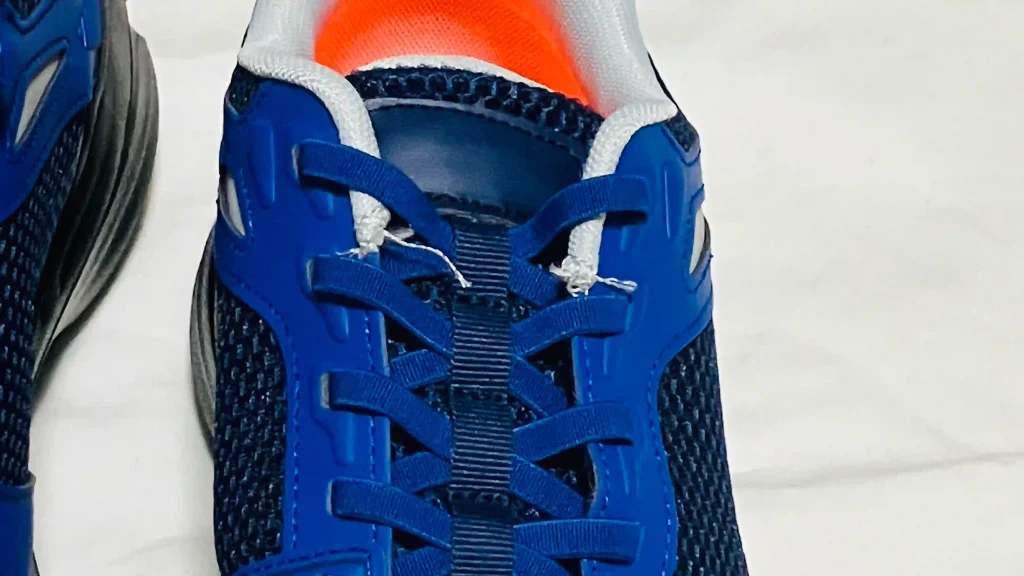 紐のように見えるゴムレースで、さらに脱ぎ履きしやすい状態を作っています。